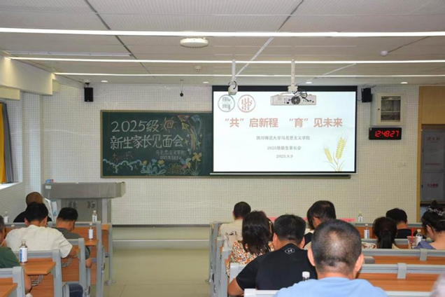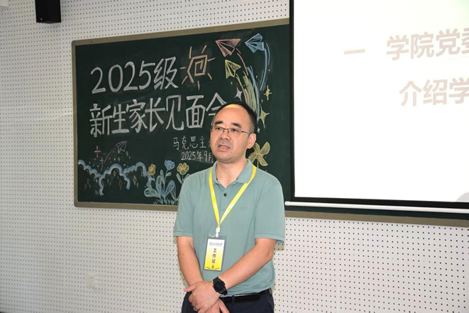 胡尚峰介绍了学院基本情况和人才培养情况。他对家长们的到来表示热烈的欢迎,并感谢各位家长对四川师范大学马克思主义学院的信任。他向家长们介绍了学院招生情况、学校概况和历史背景、专业优势、人才培养、导师制度、升学与就业前景等情况。他表示要注重培养学生“学会做人、学会做事、学会学习”三大核心能力,提升学生的综合素质。同时,他鼓励家长引导孩子在集体生活中锻炼心理素质,通过社会实践提升独立能力,并强调良好习惯对学业与身心健康至关重要。最后,他建议家长与学校保持密切沟通,携手帮助学生更好地适应大学生活。