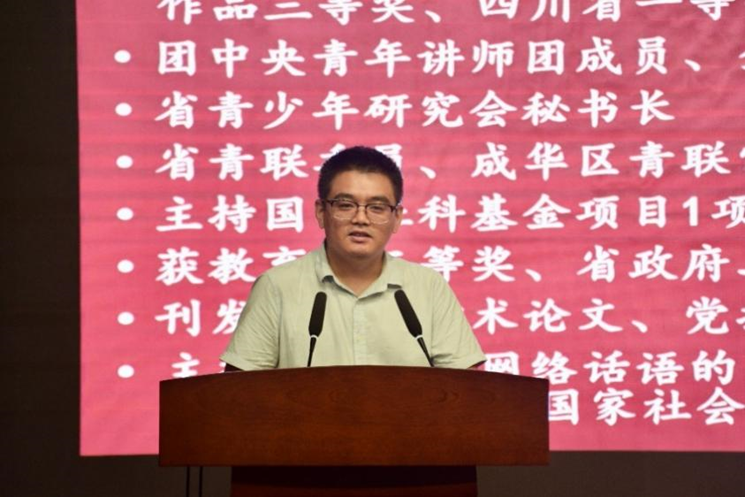 学院院长戴剑飞在致辞里围绕“传承、团队、奋进”三个核心关键词,基于学院的发展历程介绍了学院所取得的重要成就,着重强调了传承马院精神的重要意义。他指出“团队”是四川师范大学马克思主义学院重要的发展之魂,并且以“理性求是、实践创新”的院训阐释了马院人的奋进与担当。他期望每一位马院学子,始终践行“在马言马、在马爱马、在马信马、在马用马”的理念,紧跟学院发展步伐,传承学院精神,凝聚团队力量,共同踏上奋进征程,携手创造美好未来。