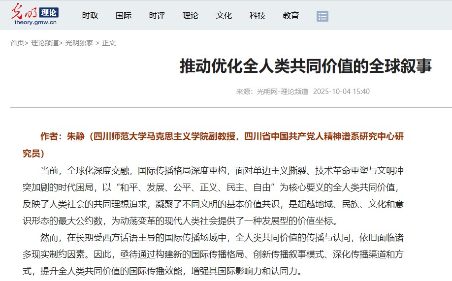 然而,在长期受西方话语主导的国际传播场域中,全人类共同价值的传播与认同,依旧面临诸多现实制约因素。因此,亟待通过构建新的国际传播格局、创新传播叙事模式、深化传播渠道和方式,提升全人类共同价值的国际传播效能,增强其国际影响力和认同力。