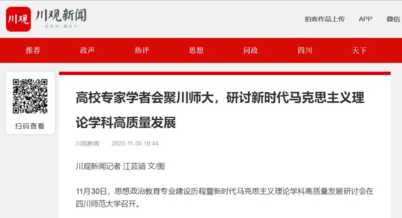 11月30日,思想政治教育专业建设历程暨新时代马克思主义理论学科高质量发展研讨会在四川师范大学召开。