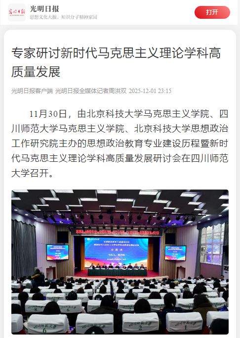 11月30日,由北京科技大学马克思主义学院、四川师范大学马克思主义学院、北京科技大学思想政治工作研究院主办的思想政治教育专业建设历程暨新时代马克思主义理论学科高质量发展研讨会在四川师范大学召开。